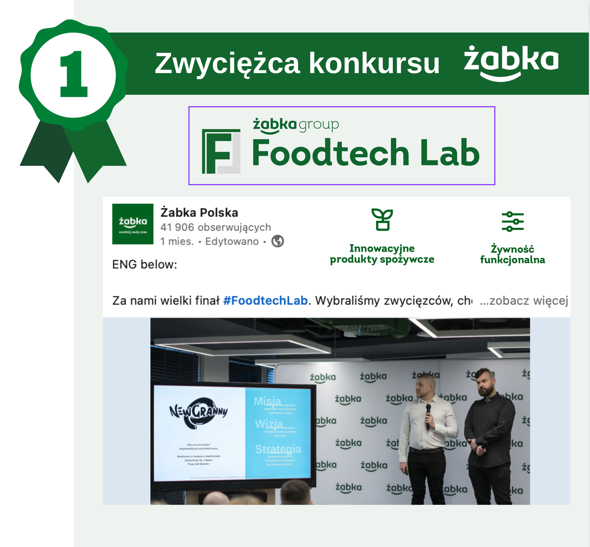 Wiadomości Handlowe o o NewGranny i wygranej w Zabka FoodTech Lab